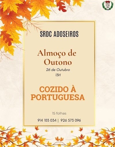 Almoço de Outono Organização: Sociedade Recreativa Desportiva e Cultural de Adoseiros + Adicionar ao Google Calendar + Exportar iCal / Outlook